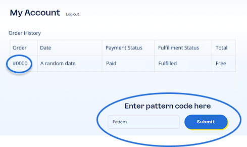 Method 2: Don’t see your order? Simply type in your access code where it says “Enter pattern code here”!